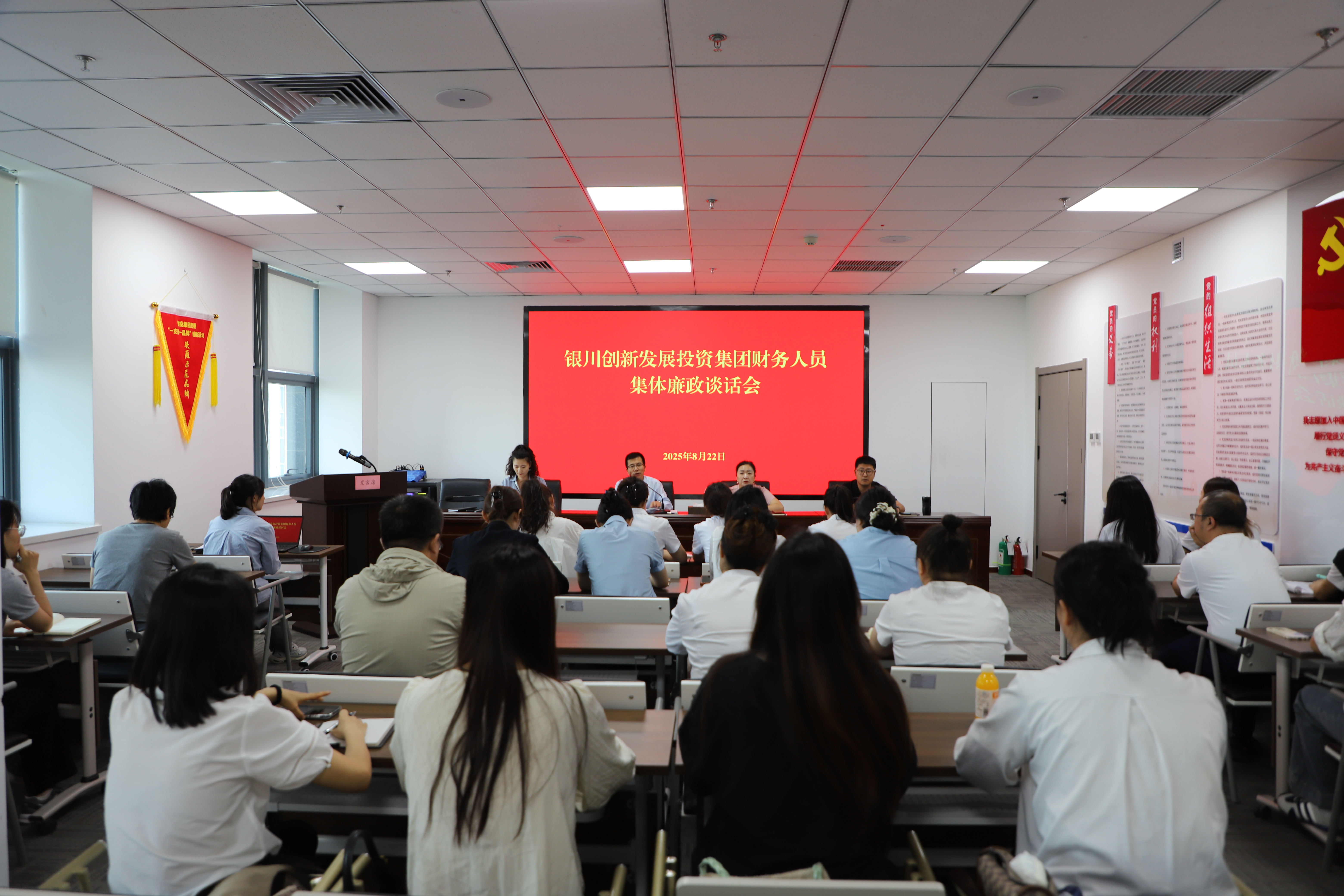 為持續(xù)鞏固深入貫徹中央八項(xiàng)規(guī)定精神學(xué)習(xí)教育成果,切實(shí)提升財(cái)務(wù)人員廉政自律意識(shí),從源頭上防范化解財(cái)務(wù)領(lǐng)域廉政風(fēng)險(xiǎn),8月22日上午,銀川創(chuàng)投集團(tuán)組織召開(kāi)財(cái)務(wù)人員集體廉政談話會(huì)。集團(tuán)黨委副書記、紀(jì)委書記王永安,黨委委員、財(cái)務(wù)總監(jiān)李海燕出席會(huì)議,集團(tuán)及各子公司財(cái)務(wù)人員共30余人參會(huì)。